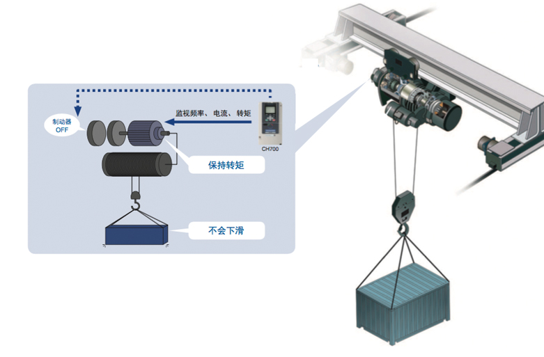 融合安川先進技術的高性能變頻器擁有豐富的起重機專用功能。