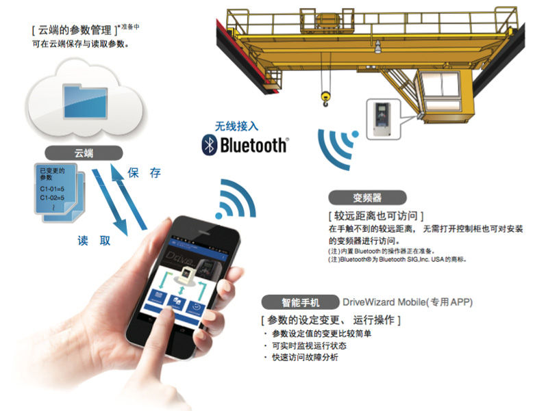 我們提供與變頻器進行無線連接和參數的云端管理等有效利用智能手機的新型支持方式。