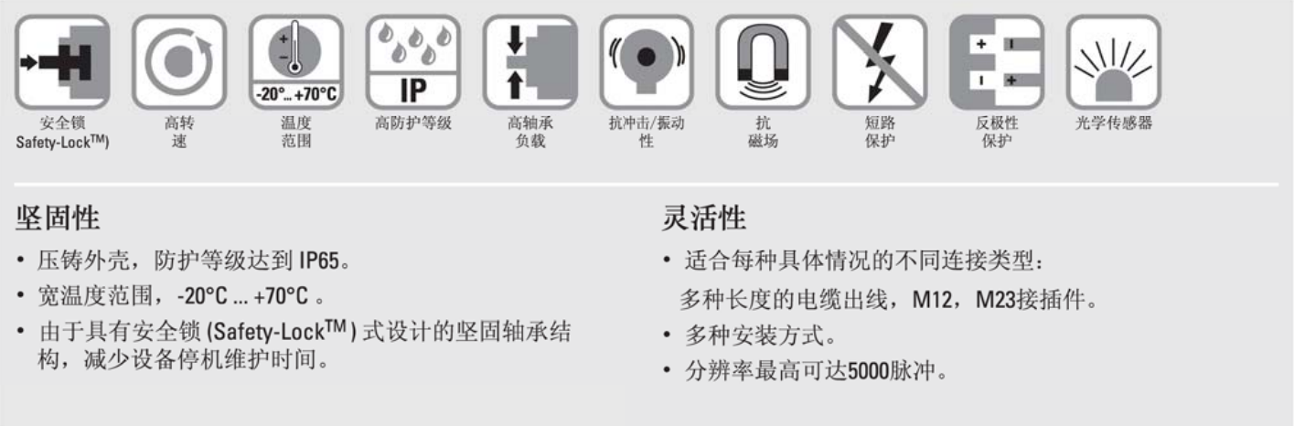 Sendix Base KIS50 / KIH50系列也配置了可靠的安仝鎖( Safety-Lock? )結構,具有更高的防安裝誤差特性,提高了編碼器的整體性能